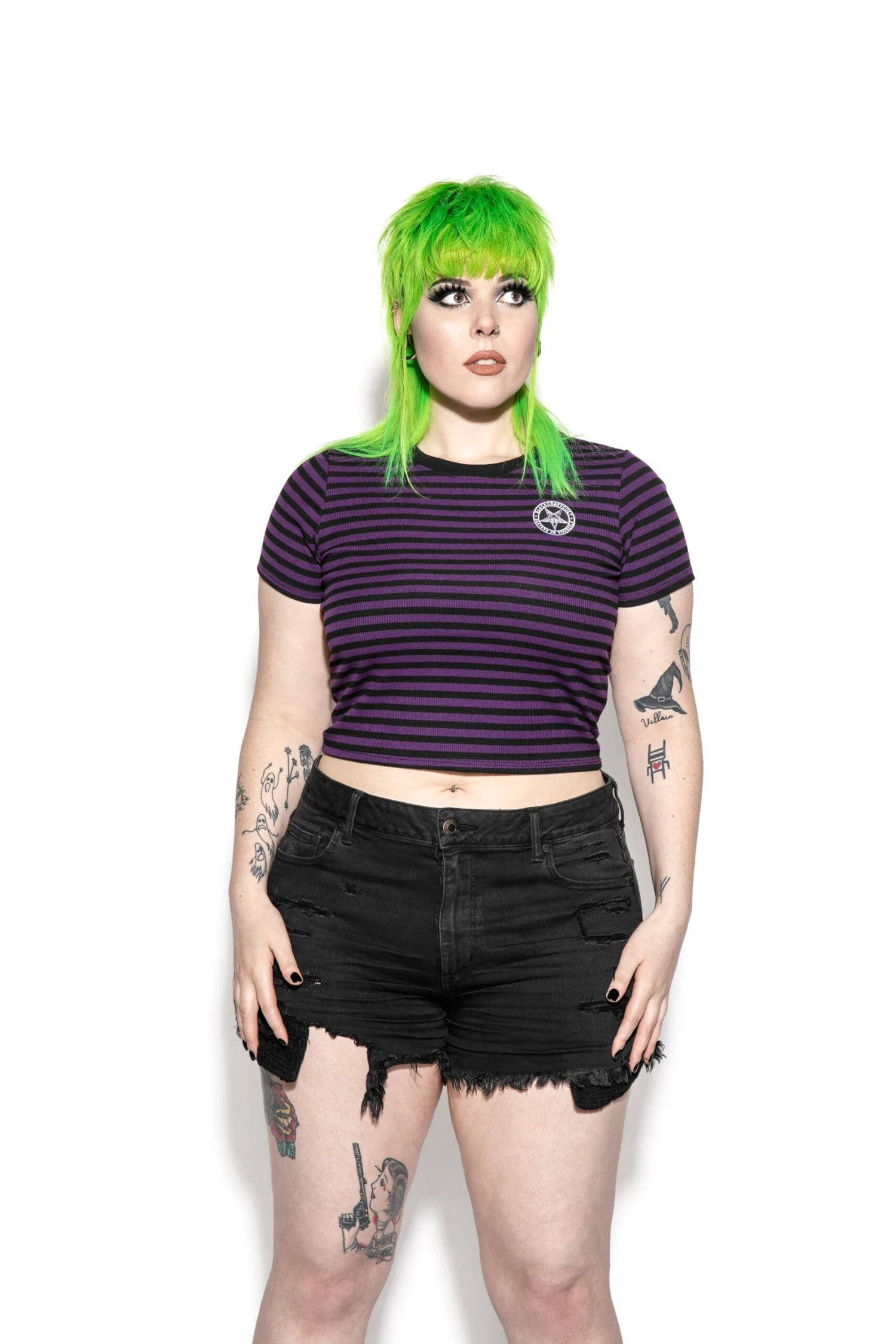 Green haired model wearing size 2X
