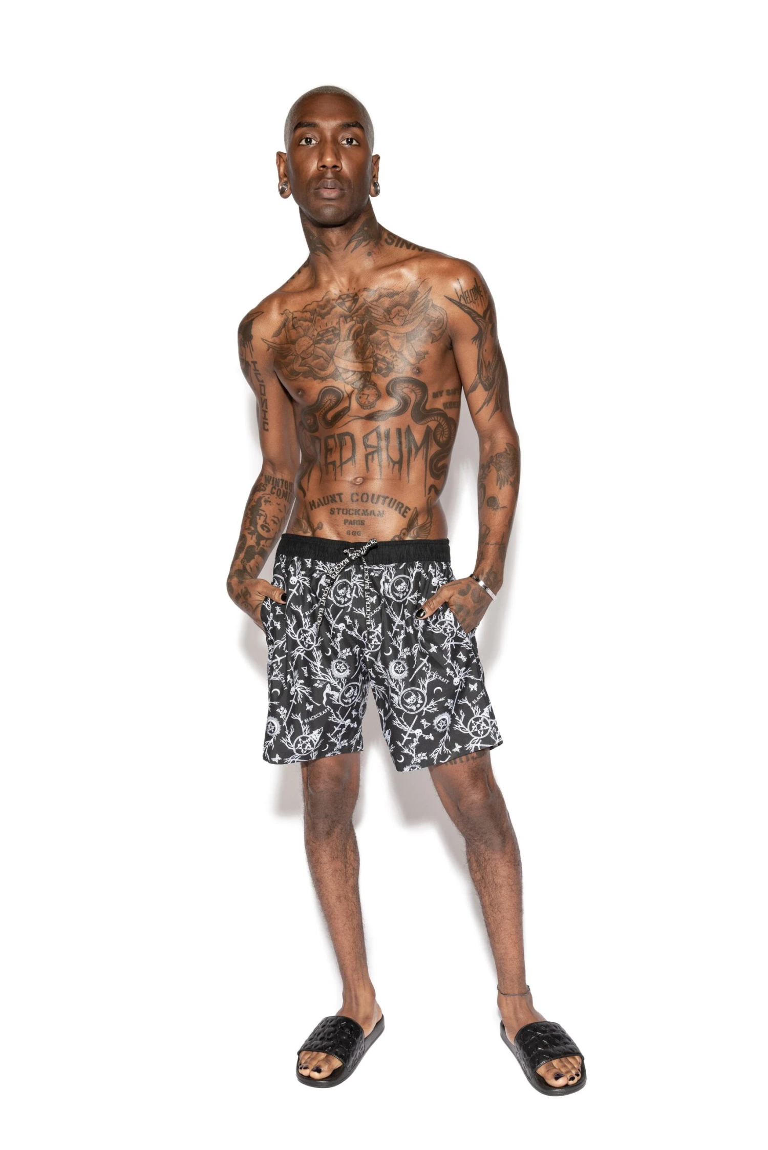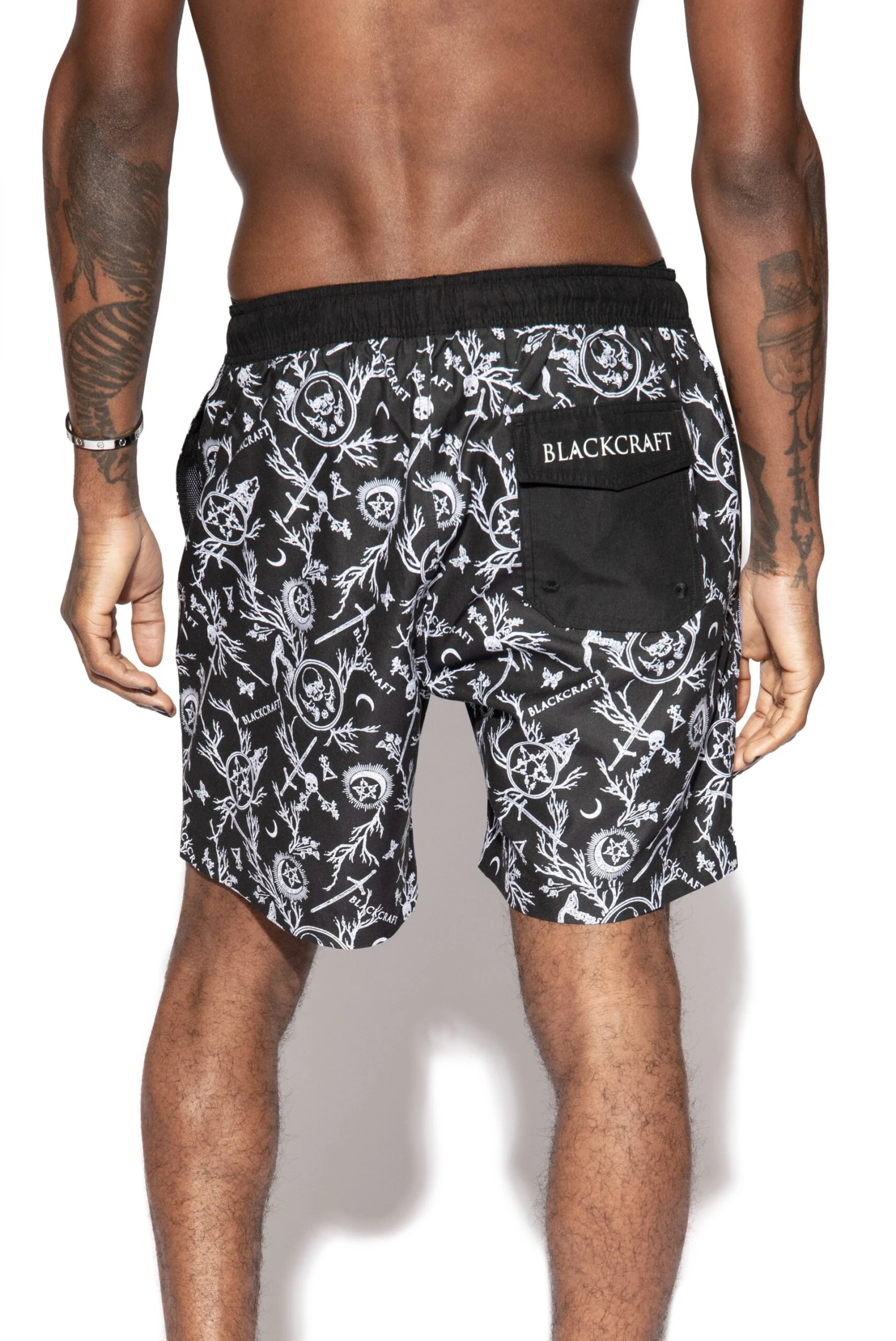 7″ inseam stretch men’s board short in Demons allover print. Solid black lace-up front and a back flap pocket features the Blackcraft logo.
