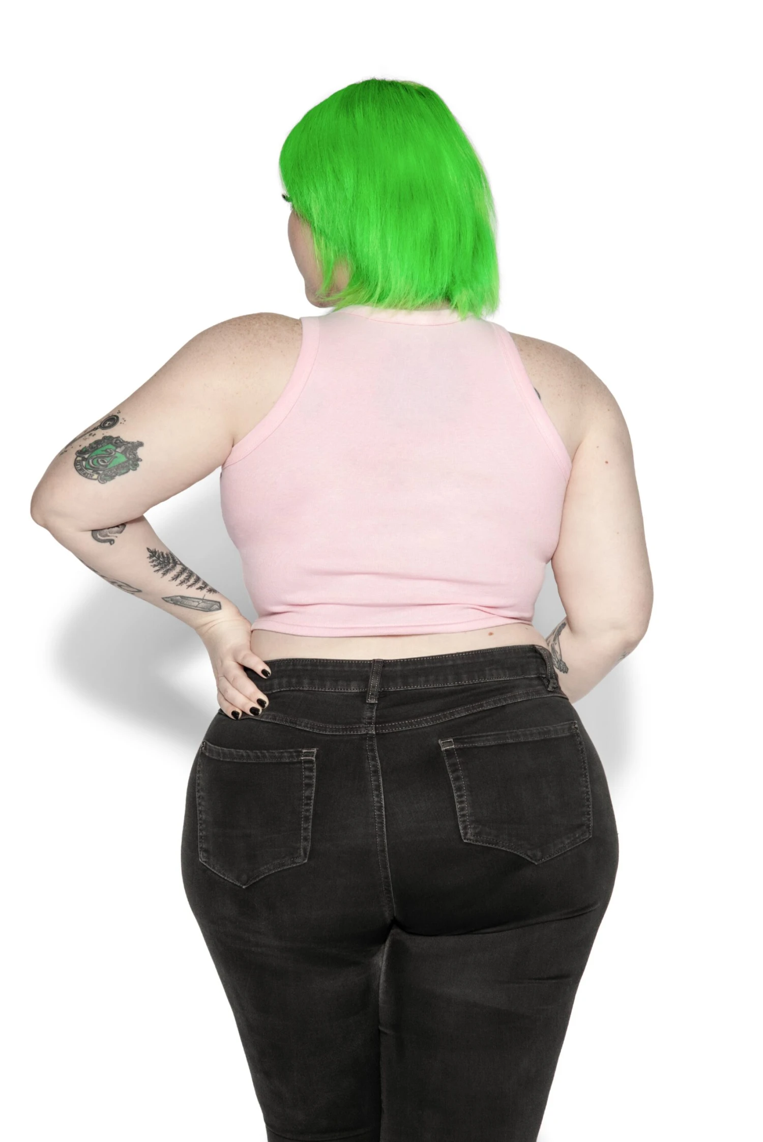 High neck. Mid length. 1×1 Micro Rib. Fitted. Stretch Fit. Pre-shrunk. Side-seamed.