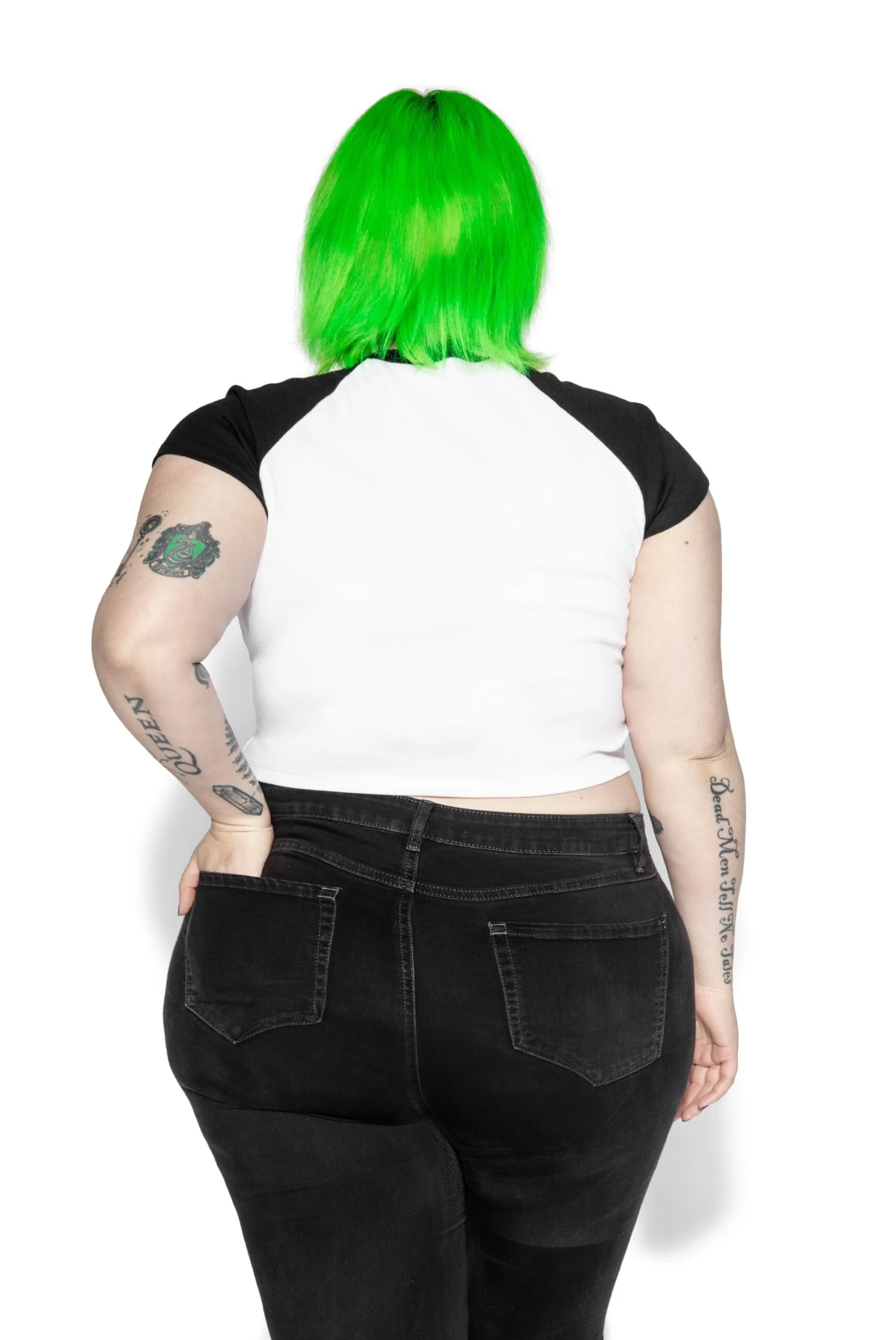 Cap sleeve. Mid length. 1×1 Micro Rib. Fitted. Stretch Fit. Pre-shrunk. Side-seamed.