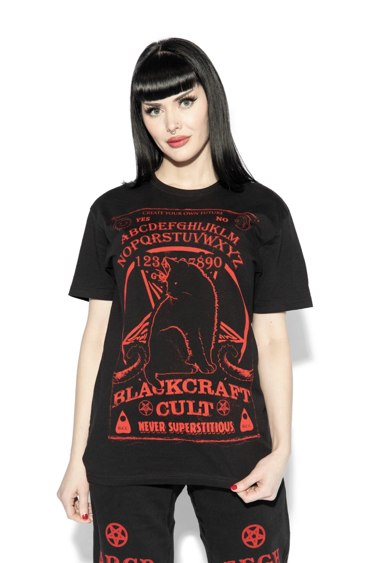 Add both the Ouija Cat Red Print Tee and Ouija Red Print Jogger to cart for $50 bundle pricing. Limited time only!
