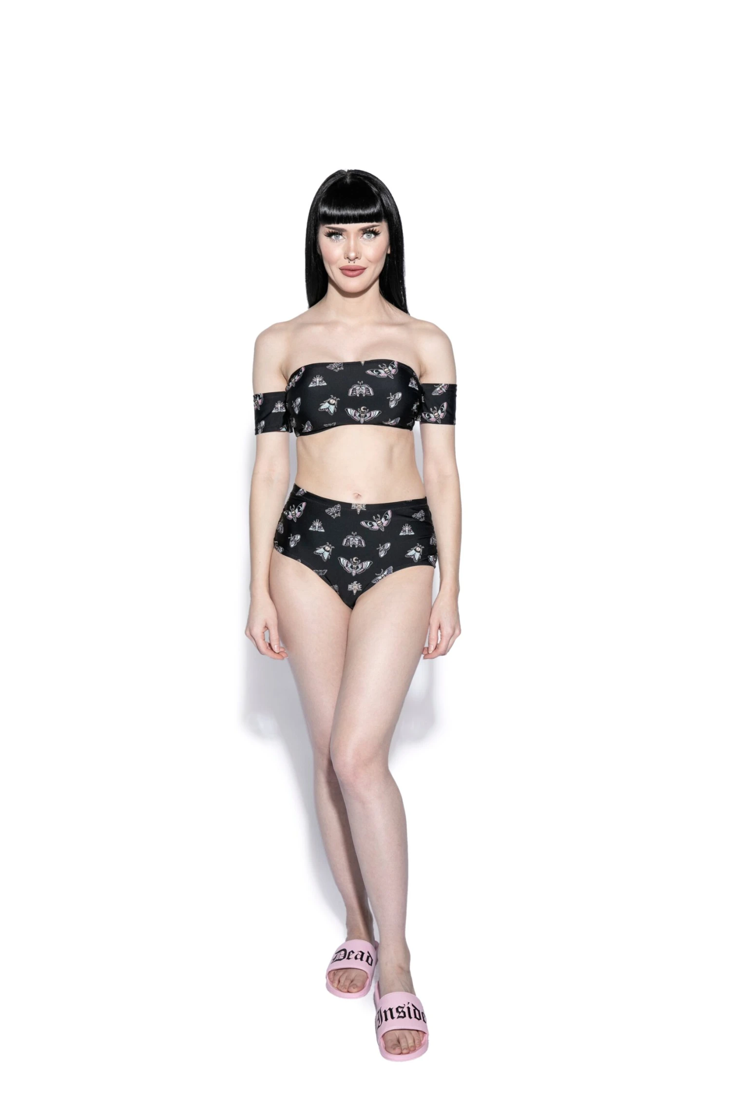Black haired model wearing size Small