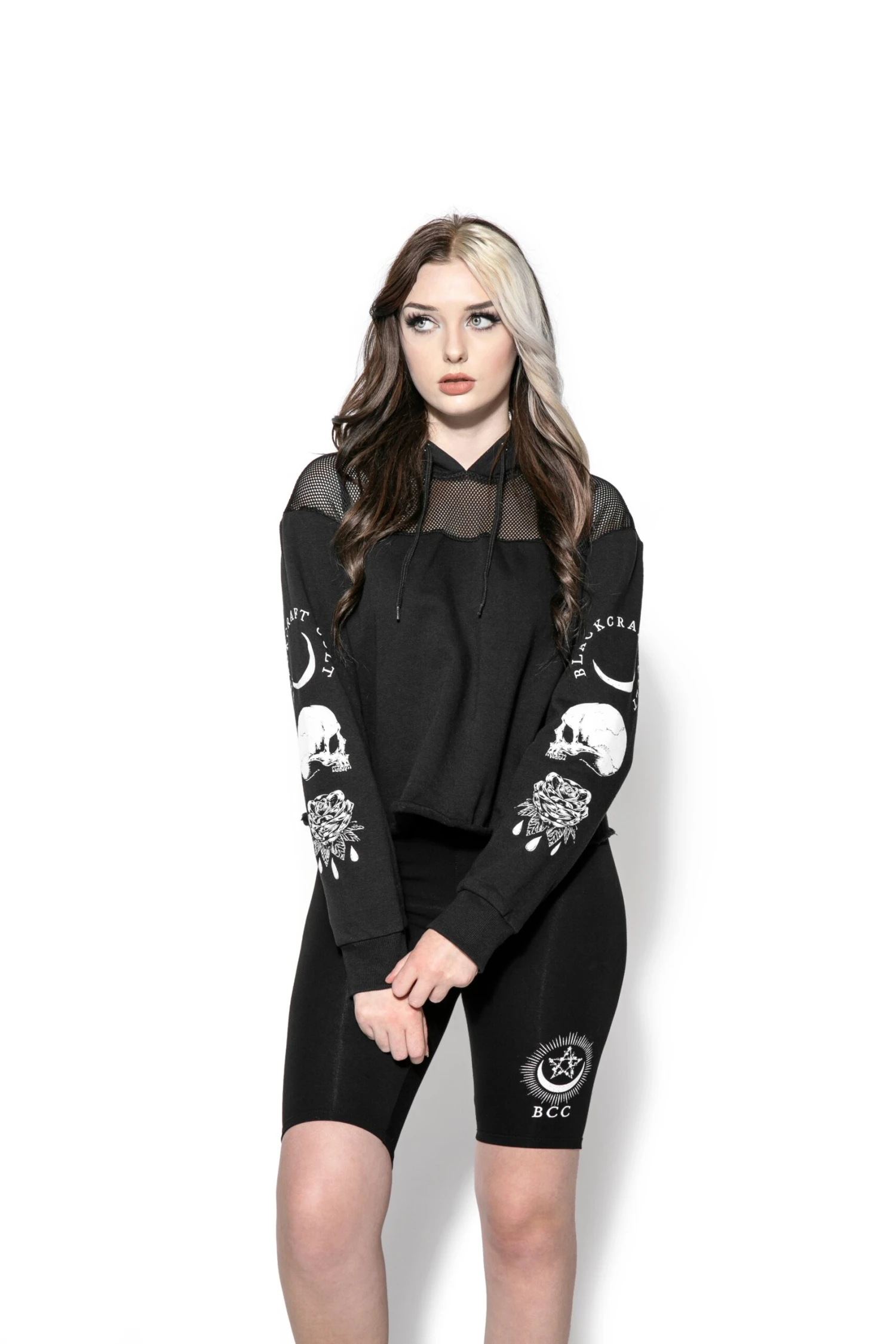 Women’s form fitting bike shorts with Pentagram Moon design accent on the leg.