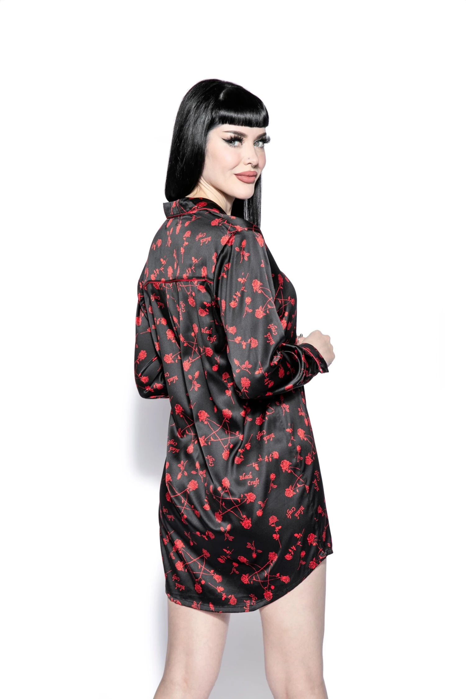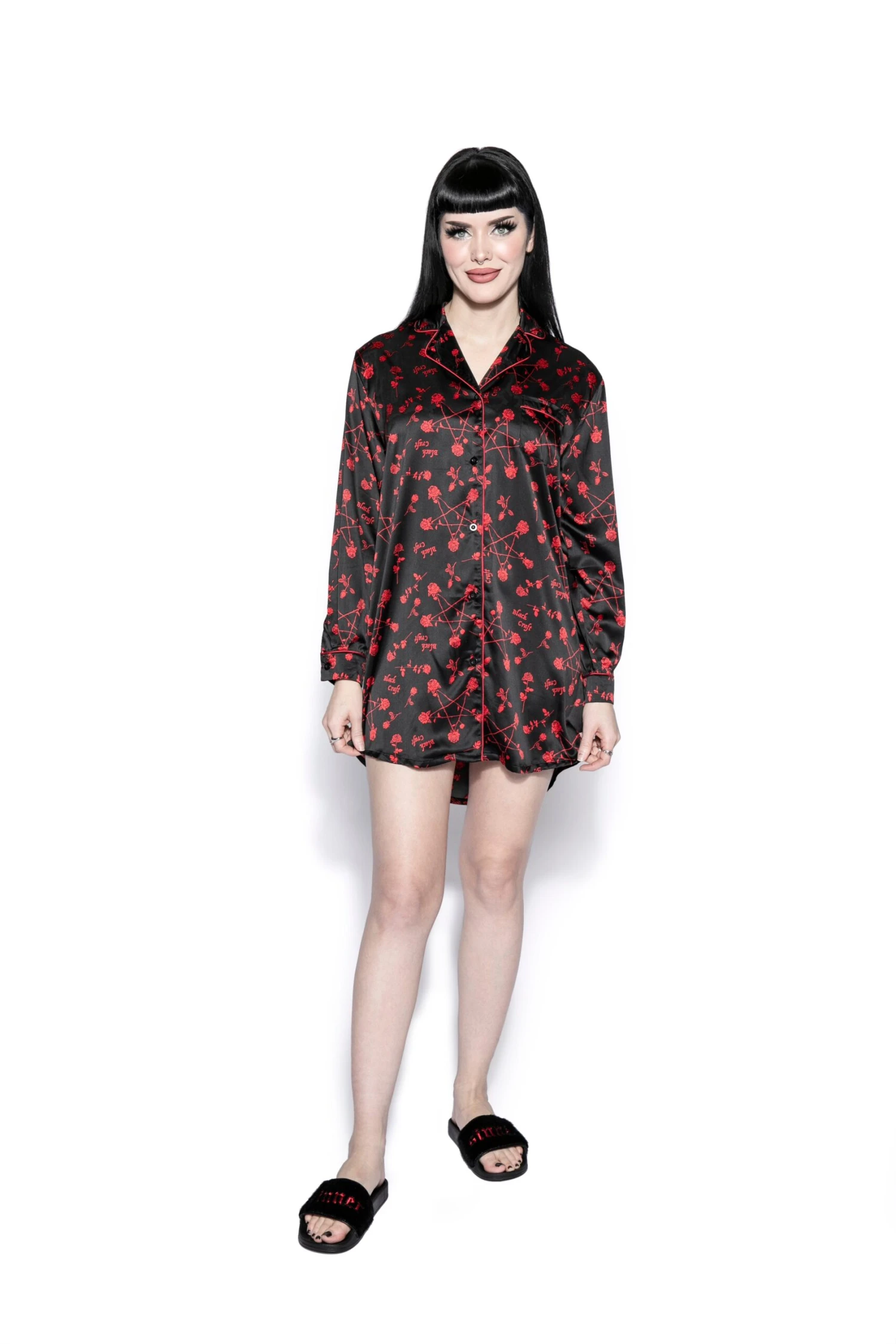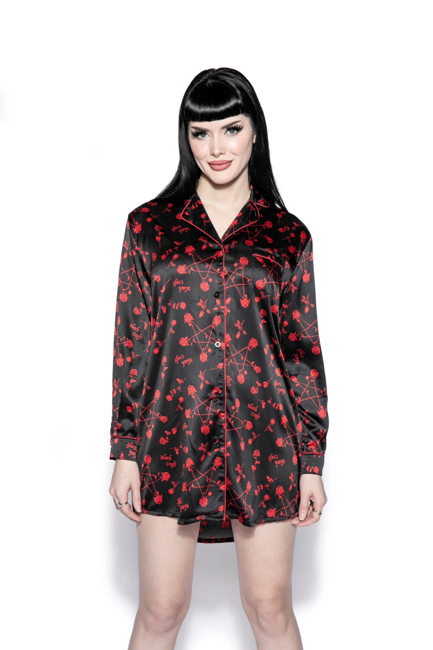 Slip into something dreamy with our satin pajama dress. Featuring long sleeves, button up, and front pocket in an oversized boyfriend shirt style.