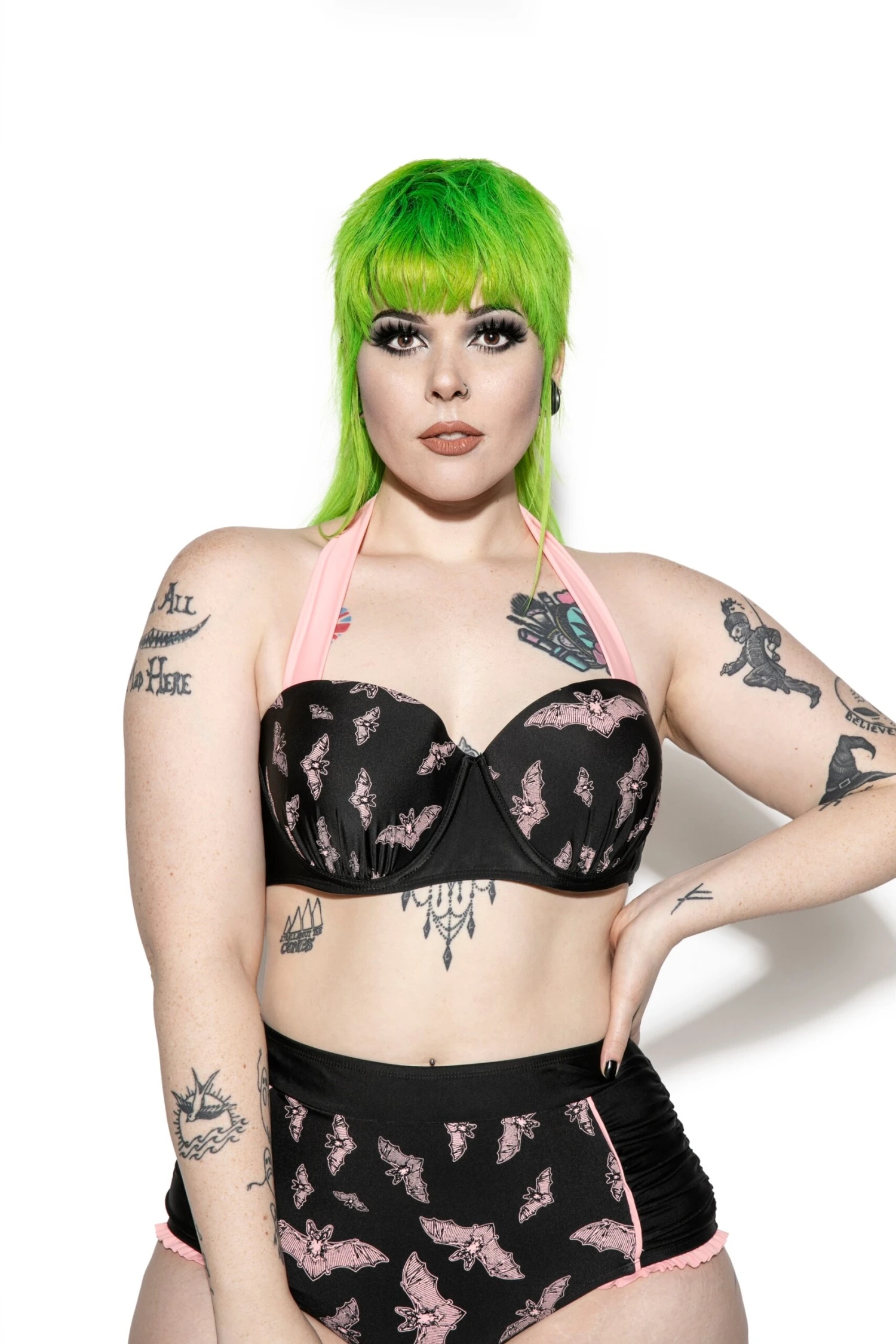 Green haired model wearing size 2X